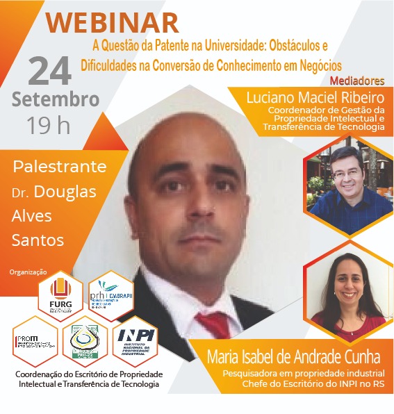 Ministrante: Douglas Alves Santos, Pesquisador em propriedade industrial - examinador de patentes do Instituto Nacional de Propriedade Industrial (INPI).